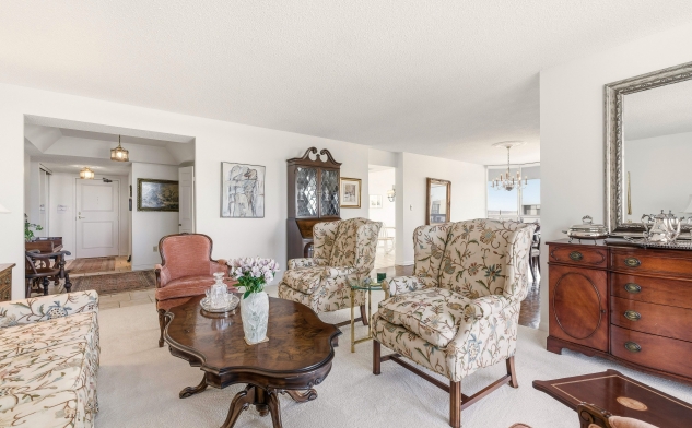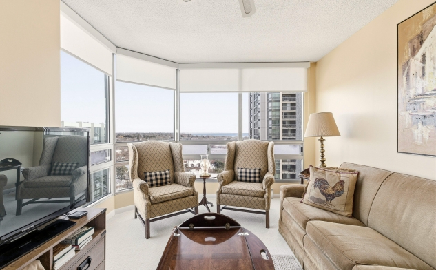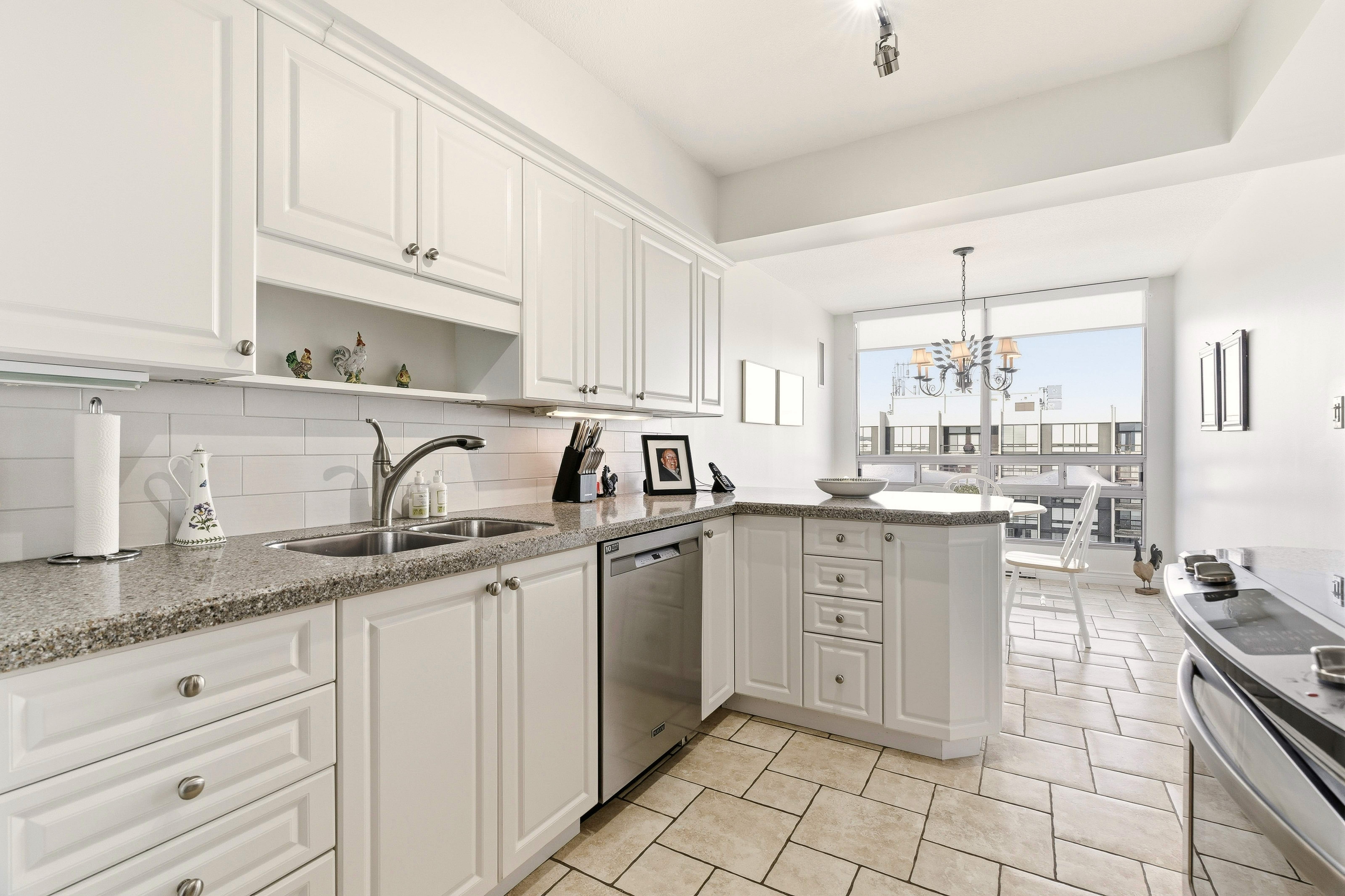 Experience elevated condo living with breathtaking views of Lake Ontario and the Toronto skyline. Located in the highly sought-after Ennisclare II On The Lake – this bright corner suite offers over 1700 sq ft of well-designed, single-level living. The spacious living room, formal dining room, and kitchen with breakfast area are ideal for both everyday comfort and entertaining. The primary bedroom features a private 3-piece ensuite, while the generous second bedroom offers convenient access to the 4-piece bath. A versatile den with spectacular views, and in-suite laundry/storage room add functionality. Two sliding glass door walkouts lead to an expansive balcony, perfect for enjoying amazing lake, garden, and skyline views. Residents enjoy exceptional building amenities including 24-hour security, indoor pool and hot tub, fitness facilities, saunas, clubhouse, party rooms, workshop, billiards room, tennis court, and ample visitor parking. Ideally located in Bronte Village, steps to Bronte Harbour, the lake, scenic trails and parks, shopping, cafés, and restaurants. One u/g parking space and storage locker are also included.